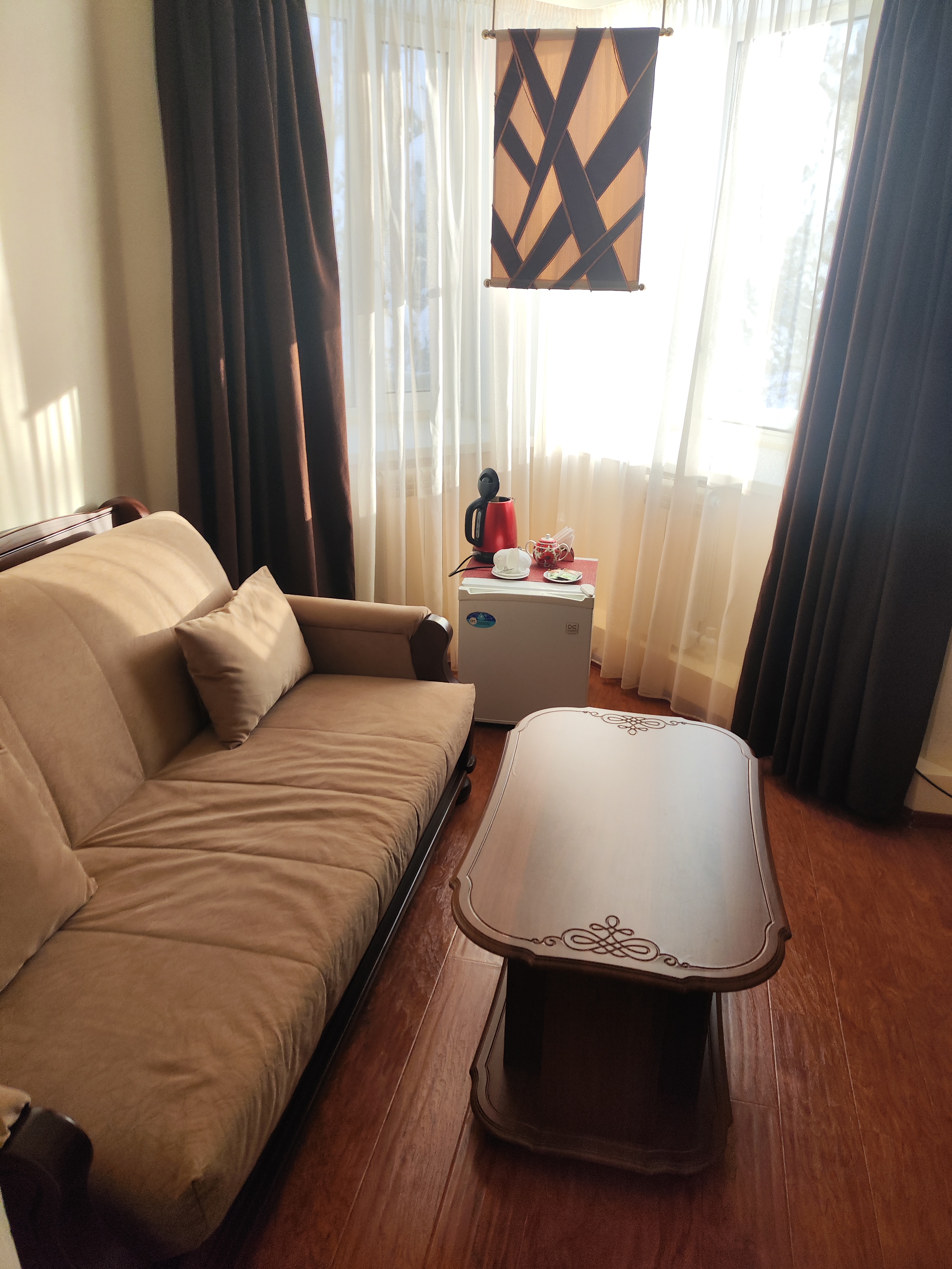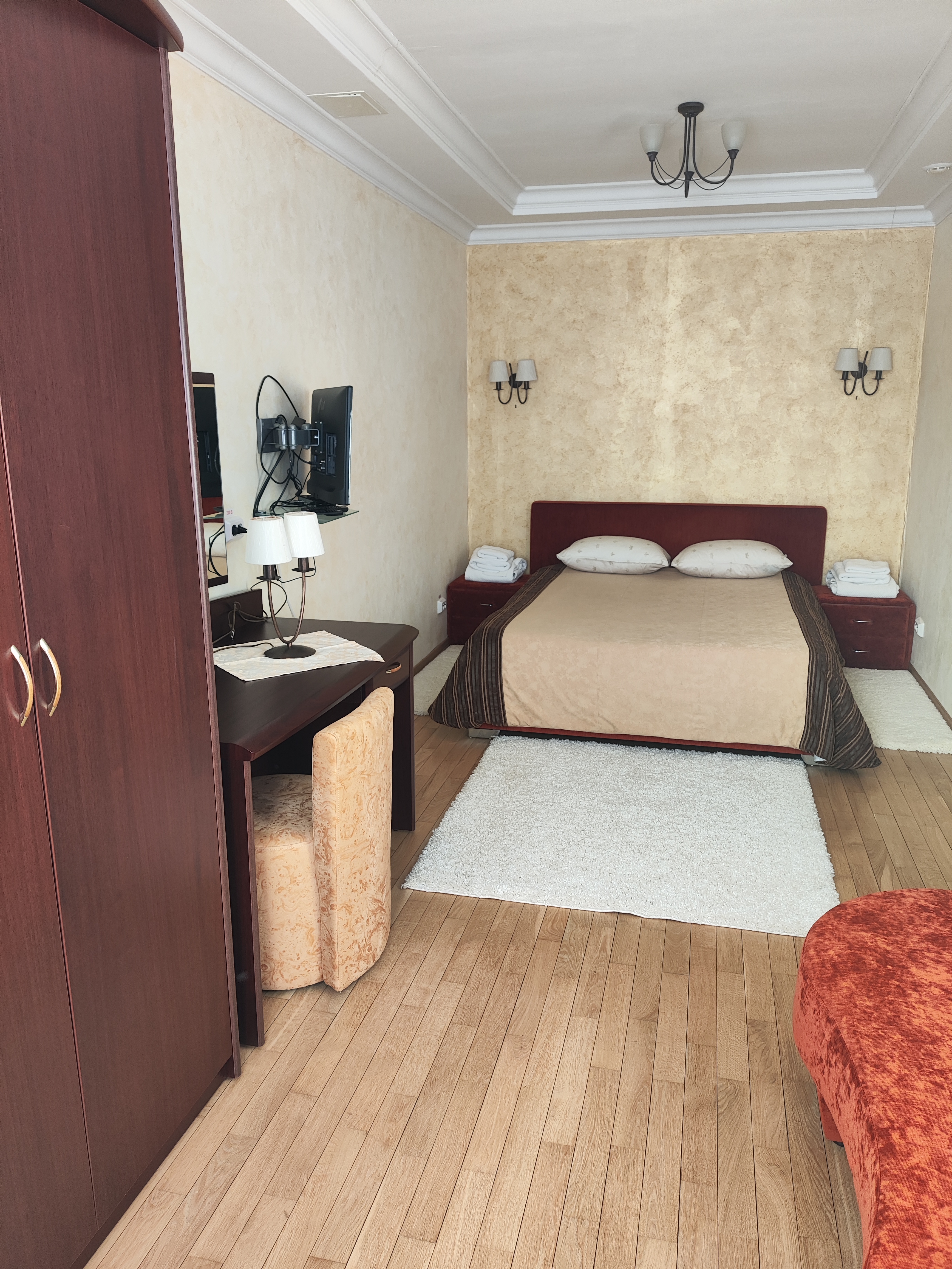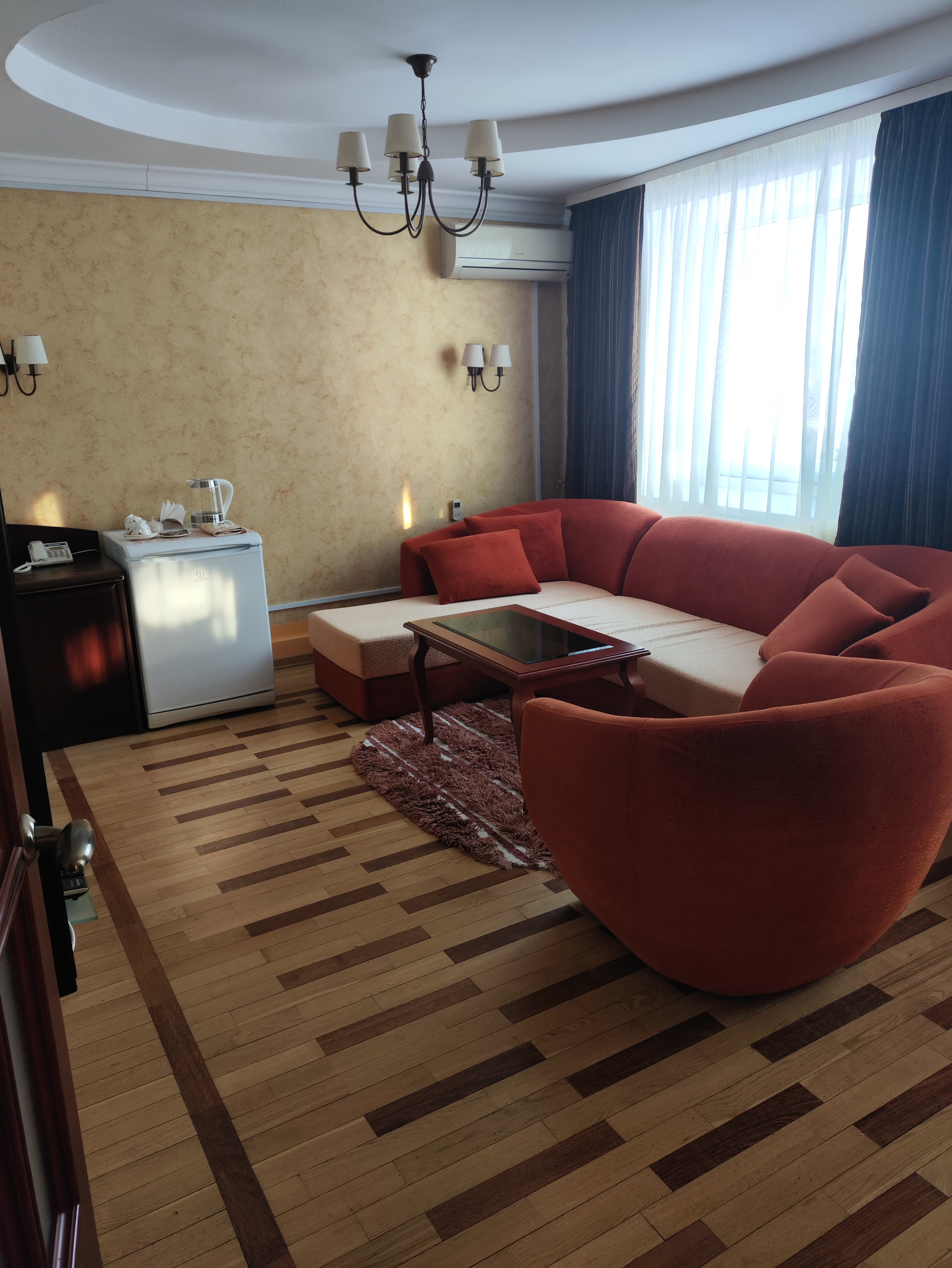Кондиционер в номере, номера для некурящих, холодильник, мини-бар, фен, чай/кофе в номерах, телевизор в номере, халат, тапочки, стиральная машина, утюг, уборка, совмещённые номера